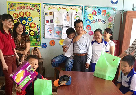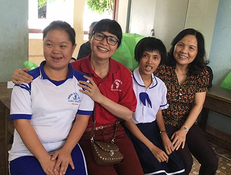 | Niềm vui của trẻ em khuyết tật khi được các cô chú đến thăm. |