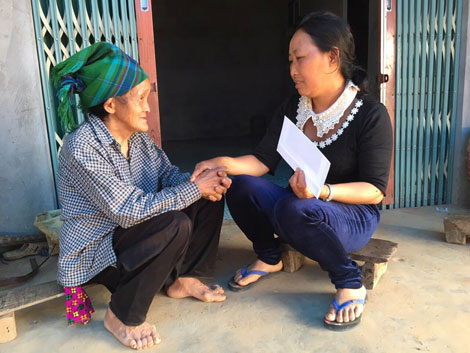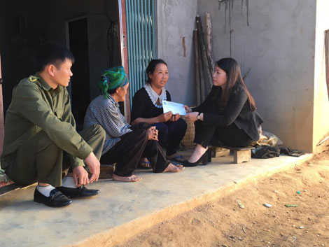 | Đại diện Báo CAND thăm hỏi, chia sẻ mất mát với gia đình anh Châu A Dế. |