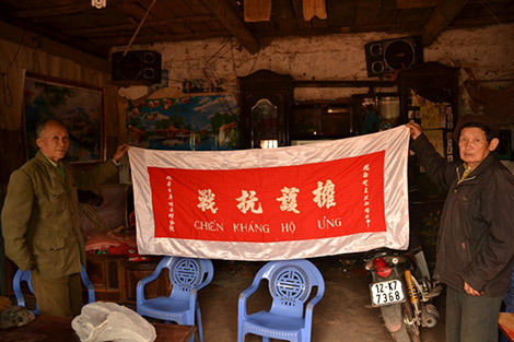 | Di tích đền Pò Háng và bức trướng Bác Hồ trao tặng. |