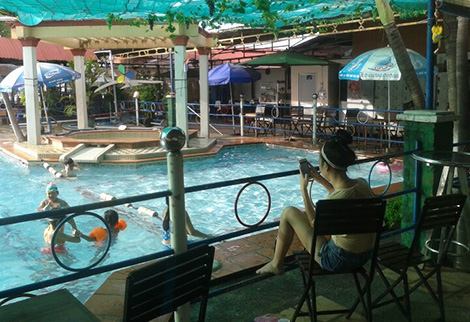 Anh chàng thanh niên tên Nguyên này kiêm nhiệm nhiều chức năng với bà chị Hoa, hơn là một huấn luyện viên bơi lội bình thường. Vừa thoa kem chống nắng, gã vừa làm vài động tác khởi động nhẹ trên người bà chị. Còn cặp sồn sồn kia thì đã nhảy ùm xuống hồ, dìu nhau bơi qua bơi lại, cười giỡn vang vang như tình nhân mới yêu.