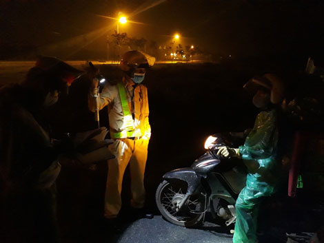 Dưới ánh đèn vàng hắt hiu, Thiếu tá Nguyễn Văn Tiệp cùng đồng đội lặng lẽ làm nhiệm vụ. Từng từng phương tiện lần lượt ra vào. Các chủ phương tiện ô tô, xe máy phối hợp với lực lượng cắm chốt dừng xe vào vị trí để kiểm tra y tế, đo thân nhiệt tất cả người trên xe. Dưới cơn mưa như trút nước, phải đứng 1 ca 8 tiếng, đôi chân của ai cũng mỏi nhừ, đôi giày đã thấm nước. Dù vất vả nhưng Thiếu tá Tiệp và các thành viên của tổ công tác vẫn không rời vị trí. Bởi ai cũng hiểu rằng chỉ cần một chút sơ sểnh, bệnh dịch có thể lây lan trên địa bàn.