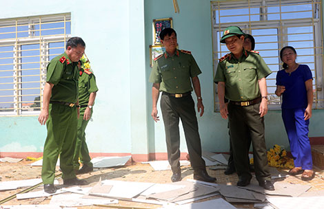 Công an Quảng Ngãi giúp dân khắc phục hậu quả cơn bão Tại tỉnh Quảng Ngãi, nơi tâm bão số 9 đổ bộ bị thiệt hại rất lớn về tài sản. 84.000 mái nhà tôn, ngói của người dân, trụ sở cơ quan, trường học... bị tốc mái, hư hỏng; nhiều biển quảng cáo, cây xanh ngã đổ trên nhiều tuyến đường... 2 cán bộ chiến sĩ công an bị thương khi đang làm nhiệm vụ và giúp đỡ người dân... Công an tỉnh Quảng Ngãi đã cử lực lượng tham gia với các đoàn công tác của từng địa phương để cứu trợ khẩn cấp tại các khu vực bị thiệt hại nặng.