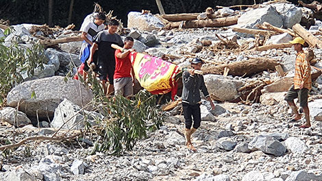 | Người thân và gia tộc chôn cất các nạn nhân được tìm thấy trong vụ lũ quét. |