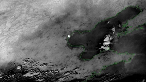 | Hình ảnh vụ nổ thứ 2 (đốm màu trắng) được một vệ tinh thời tiết Nhật Bản chụp. |