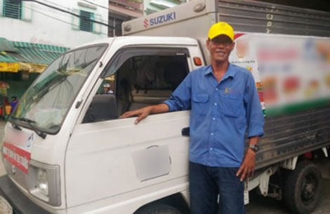 Người đàn ông sử dụng xe tải để phá cửa căn nhà bị cháy là anh  Lương Phúc Bình (35 tuổi, ngụ Bình Thạnh) hành nghề lái xe tải chở hàng cho một công ty thực phẩm trên địa bàn TP Hồ Chí Minh. Gương mặt rám nắng, người cao gầy nhưng nụ cười trên môi anh Bình cho người đối diện cảm giác thân thiện.