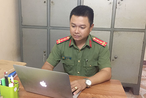 | Đại úy Nguyễn Trung Đức với đam mê với công nghệ thông tin. |