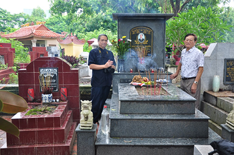| Mộ doanh nhân Bạch Thái bưởi bên cạnh mộ người cha Đỗ Văn Cóp. |
