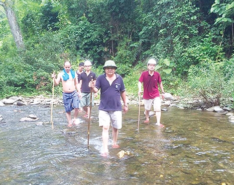 Thiếu tướng Hồ Sỹ Tiến cùng tổ công tác Cục Cảnh sát hình sự lội suối vào hiện trường vụ thảm án tại bản Phồng (Nghệ An).