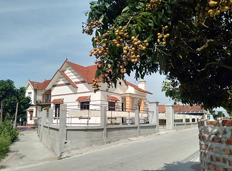 Tôi cười trừ “Nhớ chứ”. “Nó bây giờ là “Vua nhãn lồng rồi. Mình qua nhà nó đi”. Nói rồi, chúng tôi đi luôn, mà cái nhà ông Thi này cũng “khiêm tốn”, ông không dẫn tôi đi thăm vườn nhãn nhà mình mà lại dẫn thẳng tôi tới vườn nhãn nhà ông Lê Đình Thắng, ở đội 12 (nhà ông Thi ở đội 16). May quá, ông Thắng có nhà, đó là một ngôi nhà 2 tầng xây dựng cách đây 10 năm nhưng cũng khá bề thế. Con đường bê tông vừa lối xe đi dẫn thẳng từ đường liên thôn tới tận cổng.