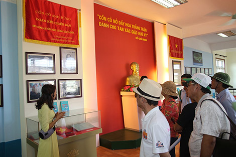 Theo chân anh Hà Tiến Nam, Bí thư Đoàn Thanh niên huyện Cồn Cỏ, chúng tôi đến thăm nhà truyền thống, đài tưởng niệm của huyện và không khỏi xúc động với câu chuyện của người hướng dẫn viên đặc biệt này. Anh vốn là người Vĩnh Linh (Quảng Trị), đến với đảo từ gần chục năm trước theo tiếng gọi của Đảng, Nhà nước. Với anh, đảo cũng là quê hương, là máu thịt của mình.