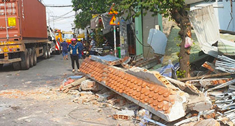 | Xe đầu kéo tông sập 3 nhà dân tại TP Hồ Chí Minh. |