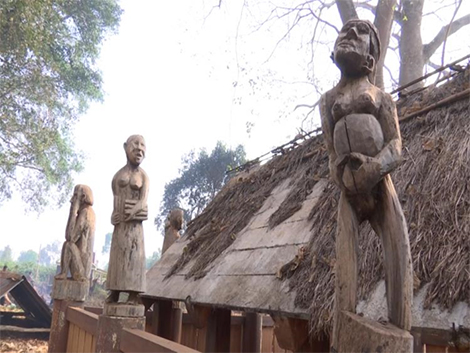 Tôi bỗng giật mình khi nhìn thấy một bức tượng đã mục nát theo thời gian. Anh Vinh nói đây là ngôi nhà mồ sau khi làm lễ bỏ mả chừng đã hơn 10 năm. Có những bức tượng làm bằng gỗ thường dễ mục theo mưa nắng. Tôi chợt nhớ, họa sĩ Lê Hùng đã từng nói, chính vẻ đẹp của những bức tượng Tây Nguyên lại có sức ám ảnh đến gai người, bởi sự tàn phai của nó. Trước mắt tôi có thể là những bức tượng này chăng.