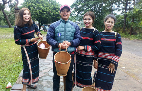 | Anh Vinh và các thành viên đội văn nghệ. |