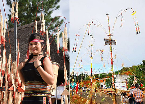 | Cô gái Bana trong ngày hội; cây nêu Tây Nguyên. |