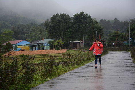 Từ cửa khẩu Bắc Phó Sinh trên tỉnh lộ 340, chúng tôi rẽ vào còn đường nhỏ đèo, dốc quanh co uốn lượn chìm ẩn trong sương mù và mưa bụi để đến Pò Hèn. “Gần 1 năm nay tiết trời như vậy rồi. Suốt ngày đêm mưa cứ xầm xì. Quần áo mặc lúc nào cũng ẩm ẩm khó chịu lắm!”, anh Vi Tiến Hanh - Phó Bí thư Đảng ủy xã Hải Sơn - bạn đồng hành trên xe cất tiếng than thở.