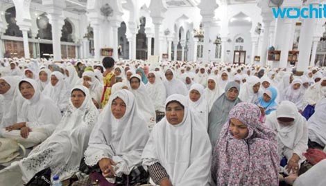| Lễ cầu nguyện tại ngôi đền duy nhất còn “đứng vững” sau thảm họa động đất, sóng thần ở miền Bắc Aceh, Indonesia. Ảnh: Wochit. |