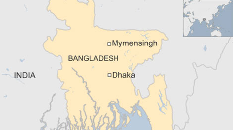 | Thị trấn Mymensing - địa điểm xảy ra vụ dẫm đạp nằm cách thủ đô Dhaka khoảng 115 km về phía bắc. |