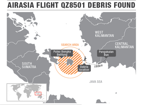 Sơ đồ khu vực tìm kiếm máy bay QZ8501.