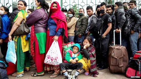 | Hàng ngàn người đang đợi chuyến xe bus để rời Kathmandu. (Reuters) |