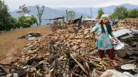 | Hình ảnh đổ nát ở Gorkha, một trong những huyện chịu tổn thương nhiều nhất. (AP) |