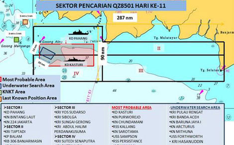 Trong khi đó, Tư lệnh Không quân Indonesia, Tướng Moeldoko cho biết, đội cứu hộ đã phải vật lộn với thời tiết để tiếp tục công việc tìm kiếm trong sáng 7/1: “Thời tiết sáng nay có mưa nặng hạt, sóng cao 2-3m, rất khó khăn cho hoạt động tìm kiếm, phạm vi buộc phải thu hẹp. Mọi người phải nỗ lực rất lớn”.