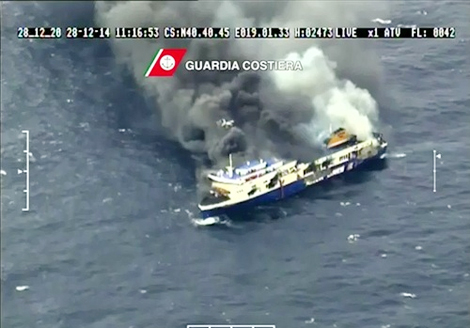 | Chiếc phà chở 478 hành khách và thủy thủ đoàn phát hỏa trên biển Adriatic. |