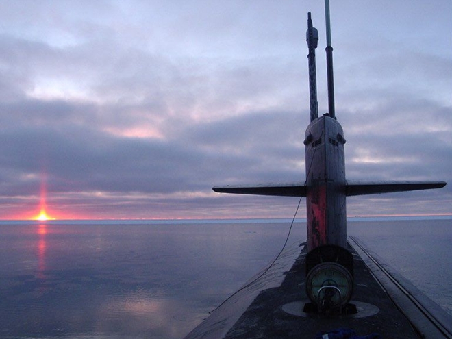 | Hoàng hôn ngắm từ tàu ngầm nguyên tử. |