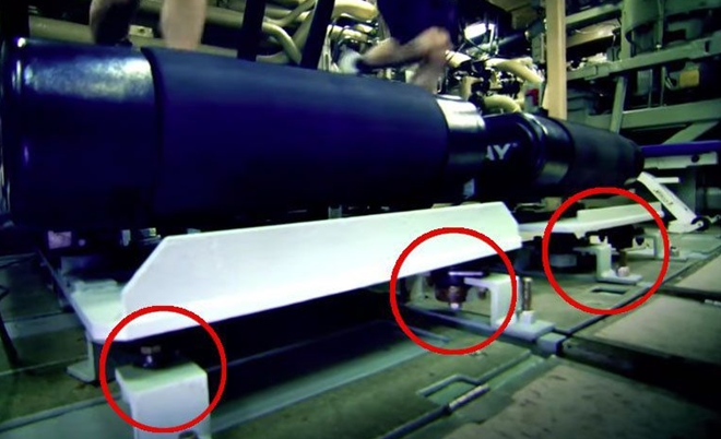 | Tuy nhiên người ta vẫn phải gắn dưới chúng các giá cách âm. Tiếng ồn là kẻ thù với tàu ngầm. |