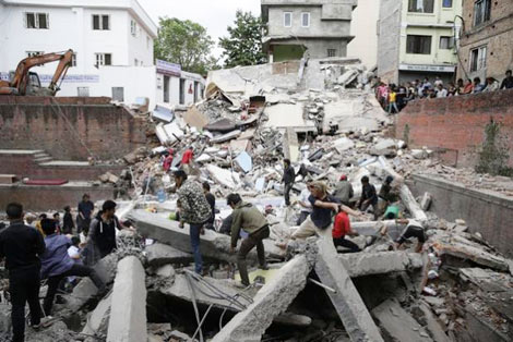 * Hãng tin BBC dẫn thông báo của Cơ quan thăm dò địa chất Mỹ (USGS) cho biết, ngày 25/4, đã xảy ra một trận động đất cường độ 7,9 độ Richter, với tâm chấn được xác định ở độ sâu 15km, cách thủ đô Kathmandu của Nepal 81km về phía Tây Bắc. Ít nhất 3 người đã thiệt mạng, 2 người bị thương và nhiều ngôi nhà bị sập tại Nepal.