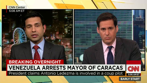 | Đài CNN đưa thông tin về vụ bắt giữ Thị trưởng Caracas. Năm ngoái, chính quyền Caracas đã tố cáo đài này đưa thông tin sai lệch về tình hình Venezuela. Ảnh: CNN |