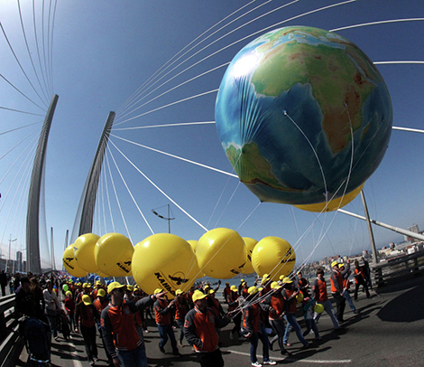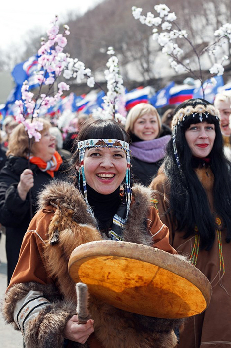 | Cư dân Petropavlovsk-Kamchatsky ăn mừng ngày Quốc tế lao động. |