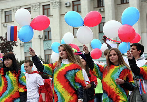 | Lễ kỷ niệm ngày 1/5 tại Simferopol (Crimea). |