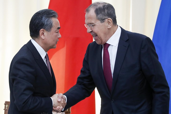 | Ngoại trưởng Sergei Lavrov và người đồng cấp Vương Nghị. |