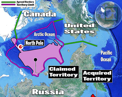 Nhìn một cách tổng thể, có vẻ như Nga đang chiếm ưu thế hơn đối với cuộc đua ở Bắc Cực nhờ đường tiếp giáp dài nhất. Nga đã tuyên bố chủ quyền khu vực thềm lục địa dưới Bắc Cực, dải Lomonosov, phần mở rộng của thềm lục địa Siberia; đồng thời sử dụng tàu ngầm mini để cắm cờ đánh dấu chủ quyền dưới đáy biển.