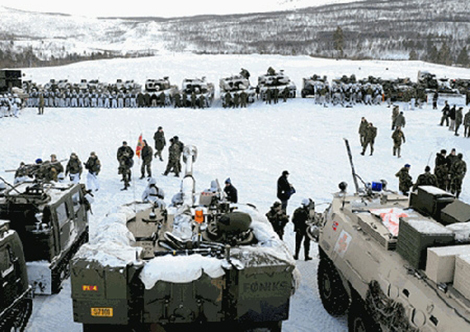 Tiếp đó, Bắc Cực giờ đây đang chứng kiến sự gia tăng các hành động quân sự nhanh chóng. Na Uy quyết định tăng ngân sách quốc phòng thêm 9% cho năm 2018, và vừa mới khép lại một trong những cuộc tập trận lớn nhất ở Bắc cực mang tên "Phản ứng lạnh", với sự tham gia của 16.300 binh sĩ từ 14 nước. Họ huấn luyện đủ kiểu chiến đấu trong môi trường băng tuyết, từ chiến tranh cường độ cao tới chống nguy cơ khủng bố.