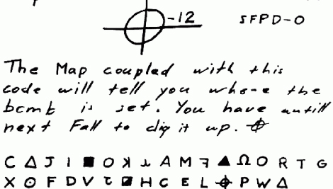 | Mỗi khi gây án xong, Zodiac đều gửi đến cảnh sát và các tòa báo địa phương một bức mật mã khó hiểu kèm một dấu hiệu hình sao làm ký hiệu riêng. |