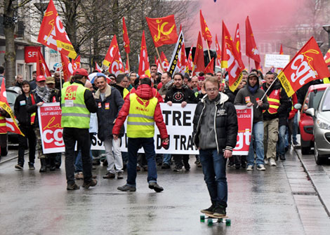| Các công đoàn đã lên sẵn kế hoạch chống đối đến cùng bằng các cuộc biểu tình đường phố, chỉ trích cuộc cải cách này là một “cuộc đảo chính về mặt xã hội”. |