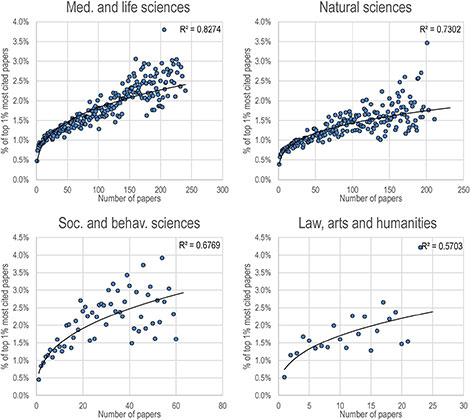 Quy luật này đúng cho cả 4 phân ngành lớn là: khoa học tự nhiên; khoa học xã hội và hành vi; luật, nhân văn và nghệ thuật; y dược và khoa học sức khỏe.