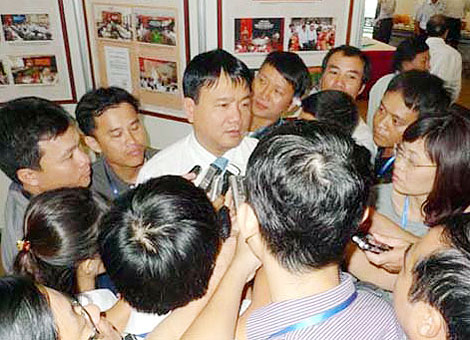 | Phóng viên Quốc hội “vây” Bộ trưởng Đinh La Thăng. |