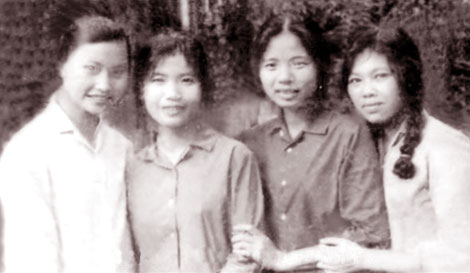 | Từ trái sang phải: Các nữ nhà báo TTX Giải phóng Khu V Hoàng Tuyết Trinh, Cao Tân Hòa, Lê Thị Kim Thoa, Triệu Thị Thùy (ảnh chụp tại chiến trường Quảng Nam năm 1974)... |