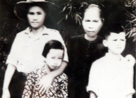Trong ảnh, bà Hồ Thị Bi (hàng sau, bìa trái) cùng mẹ chồng (hàng sau, bìa phải), con trai Trương Văn Đa và con gái  Trương Thị Oi.