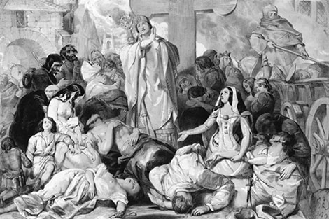 | Tranh vẽ trận đại dịch hạch Justinian. Ảnh: L.G. |