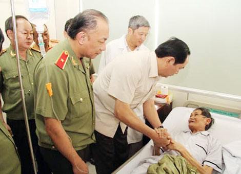 Bộ trưởng Trần Đại Quang thăm hỏi, động viên Anh hùng LLVTND Trần Tôn Thất đang điều trị tại Bệnh viện Chợ Rẫy, TP HCM.