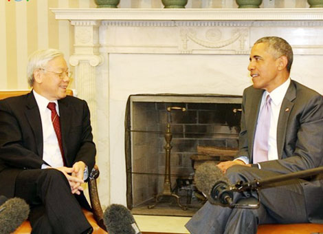 | Tổng Bí thư Nguyễn Phú Trọng và Tổng thống Barack Obama hội đàm. |