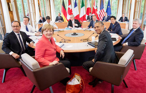 | Thủ tướng Đức Angela Merkel trong một cuộc họp G-7. |