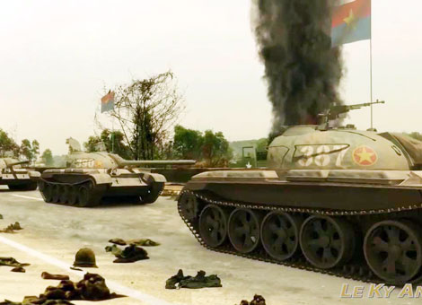 | Xe tăng quân giải phóng tiến vào Sài Gòn tháng 4/1975. |