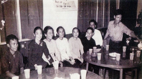 | Ông Năm Tuyến (người đứng), Cụm phó Cụm Tình báo H67 (Đơn vị Anh hùng) gặp mặt cán bộ giao thông nội thành Sài Gòn sau ngày giải phóng miền Nam. |