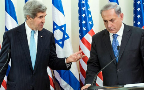 | Ngoại trưởng Mỹ, ông John Kerry (trái) và Thủ tướng Israel Benjamin Netanyahu trong cuộc gặp đầu năm 2014 tại Washington. |