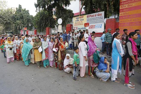 Nhiều người phải túc trực ở trước cửa ngân hàng hay cây ATM từ rất sớm để “lấy chỗ” xếp hàng. Rất nhiều người dân Ấn Độ tỏ ra hoang mang khi phần lớn các cây ATM đều hết tiền mặt.