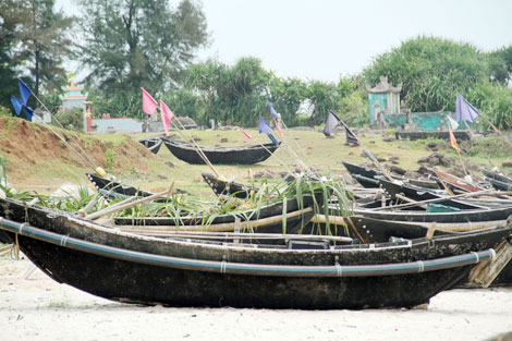 | Những con thuyền không ra khơi, người dân thôn Vịnh Mốc (Vĩnh Thạch, Vĩnh Linh, Quảng Trị) dùng những cây dứa dại ven bờ đặt lên khoang thuyền để chống nắng và tránh bị nghịch phá. |